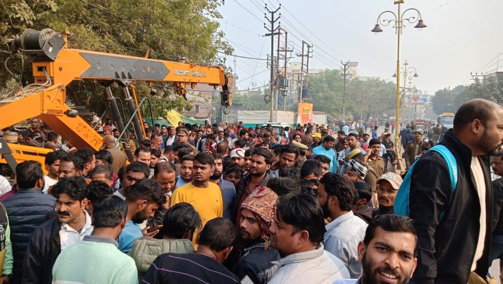 हादसे के बाद आक्रोशित परिजनों और स्थानीय लोगों ने सड़क पर शव रखकर चक्का जाम कर दिया। गुस्से में भीड़ ने जेसीबी मशीन में तोड़फोड़ भी की। मौके पर हालात को संभालने के लिए भारी पुलिस बल तैनात रहा।