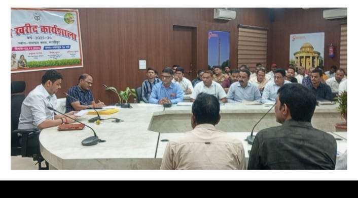 गाजीपुर। आगामी धान खरीद सत्र 2025-26 के सुचारू संचालन को लेकर सोमवार को कलेक्ट्रेट सभागार में जिलाधिकारी अविनाश कुमार की अध्यक्षता में एक महत्वपूर्ण कार्यशाला एवं प्रशिक्षण बैठक आयोजित की गई। बैठक में धान खरीद से संबंधित तैयारियों की समीक्षा की गई और अधिकारियों को पारदर्शिता व किसानों की सुविधा सुनिश्चित करने के निर्देश दिए गए।