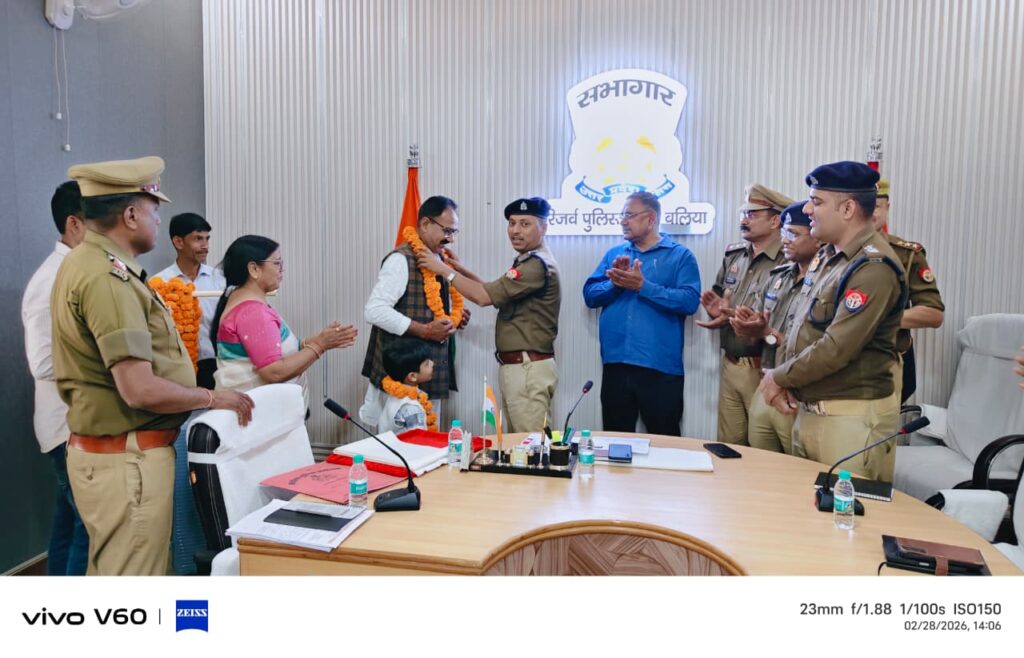 बलिया।जनपद में दिनांक 28.02.2026 को पुलिस लाइन परिसर में सेवानिवृत्त अधिकारी/कर्मचारियों के सम्मान में एक गरिमामय विदाई समारोह का आयोजन किया गया। कार्यक्रम की अध्यक्षता अपर पुलिस अधीक्षक (दक्षिणी) कृपा शंकर ने की।