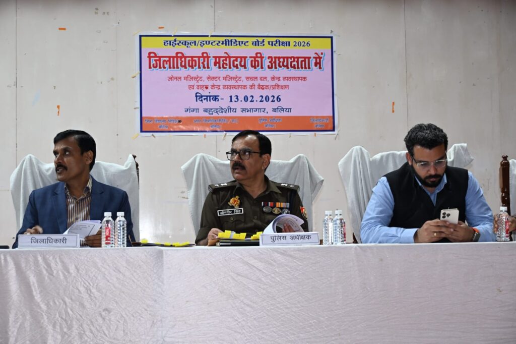 जनपद बलिया में आगामी यूपी बोर्ड परीक्षा को सकुशल, निष्पक्ष और शुचितापूर्ण ढंग से संपन्न कराने के उद्देश्य से बहुउद्देशीय सभागार, बलिया में एक महत्वपूर्ण बैठक आयोजित की गई। बैठक की अध्यक्षता जिलाधिकारी बलिया एवं पुलिस अधीक्षक बलिया ने संयुक्त रूप से की।