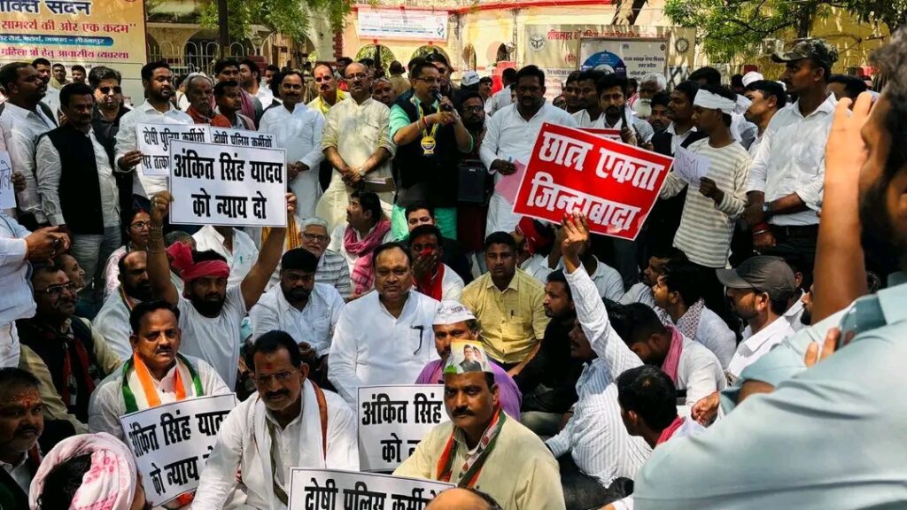 मिर्जापुर । जनपद में छात्रसंघ के पूर्व अध्यक्ष एवं अधिवक्ता अंकित सिंह यादव के साथ कथित पुलिस बर्बरता के विरोध में बुधवार को कलेक्ट्रेट परिसर में सर्वदलीय घेराव कर जोरदार प्रदर्शन किया गया। प्रदर्शन में विभिन्न राजनीतिक दलों, सामाजिक संगठनों, छात्र नेताओं और आम नागरिकों ने बड़ी संख्या में भाग लिया।