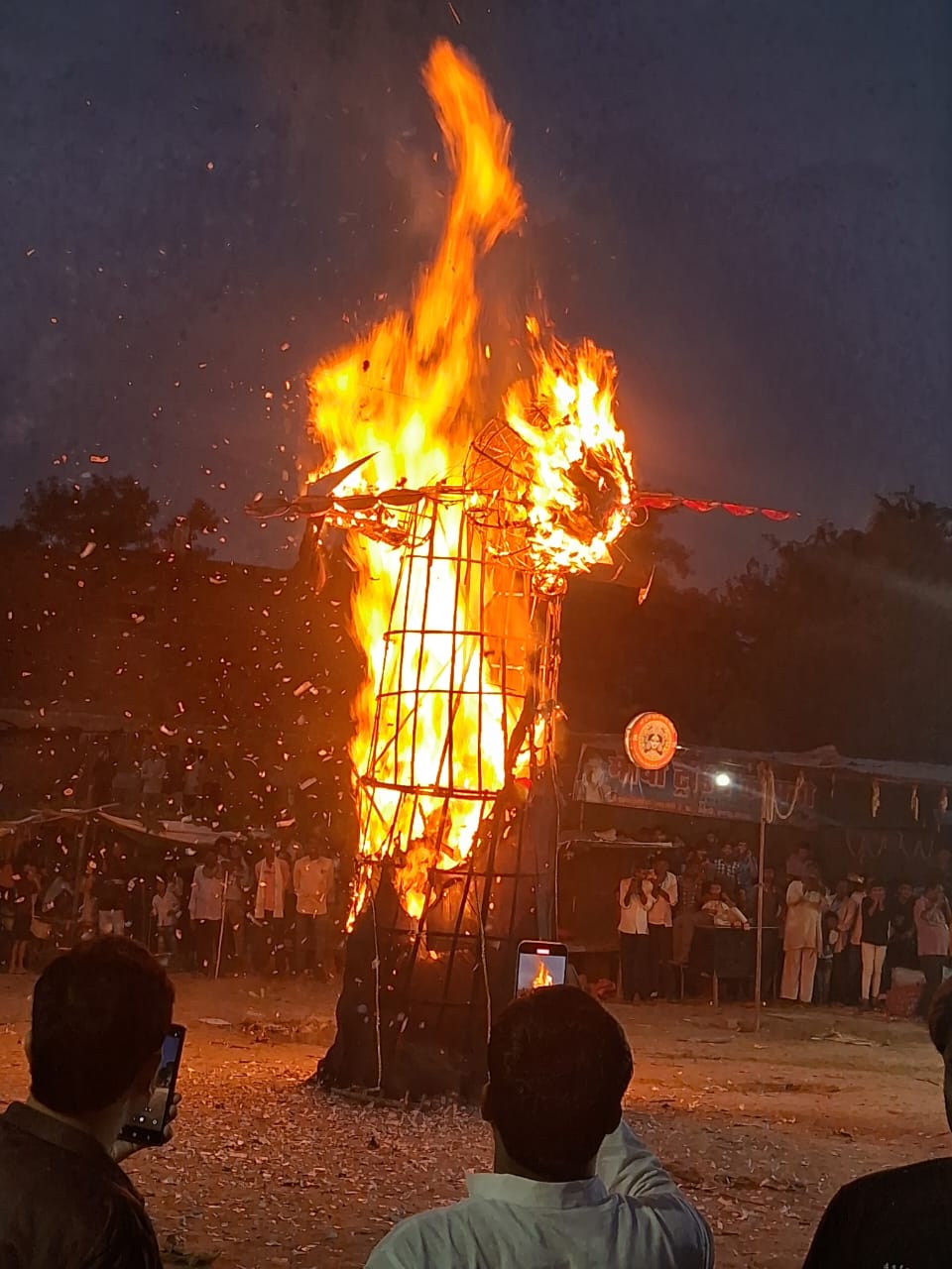 जैसे ही मैदान में विशालकाय रावण का पुतला धू-धू कर जलने लगा, पूरा वातावरण “जय श्रीराम” के गगनभेदी नारों से गूंज उठा। हजारों लोगों ने इस अद्भुत दृश्य को देखा और अधर्म पर धर्म की विजय का साक्षी बने।
