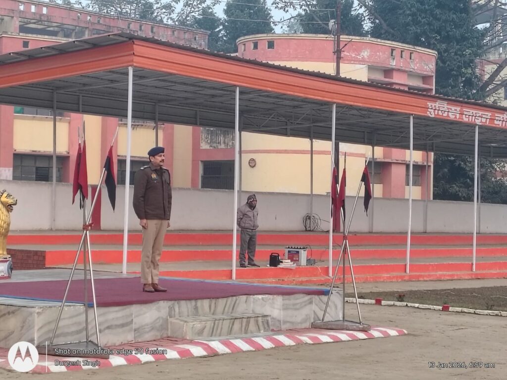 बलिया। पुलिस अधीक्षक बलिया ओमवीर सिंह के निर्देशन में मंगलवार, 13 जनवरी 2026 को अपर पुलिस अधीक्षक बलिया (उत्तरी) दिनेश कुमार शुक्ला द्वारा रिजर्व पुलिस लाइन बलिया में साप्ताहिक परेड की सलामी ली गई और परेड का निरीक्षण किया गया।