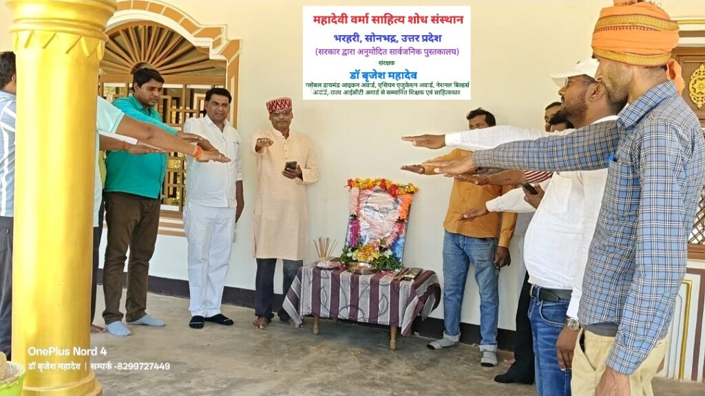 सोनभद्र। ​चोपन विकास खंड के ग्राम पंचायत भरहरी स्थित महादेवी वर्मा साहित्य शोध संस्थान के प्रांगण में मंगलवार को भारत रत्न डॉ. भीमराव अंबेडकर की जयंती ‘सामाजिक न्याय दिवस’ के रूप में अत्यंत हर्षोल्लास और गरिमामय वातावरण में मनाई गई।
