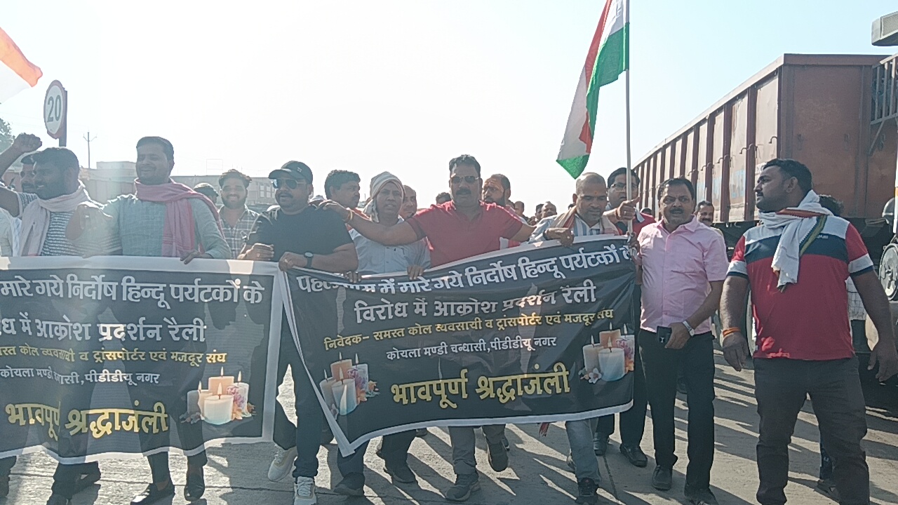 चंदौली: पहलगाम में हुए आतंकी हमले के विरोध में चंदासी कोल ट्रेडर्स एसोसिएशन के सचिव हरिशंकर सिंह मुन्ना ने एशिया के सबसे बड़ी मंडी 12 घंटे बंद का आवाहन किया। जिसमें सभी व्यापारी मजदूर ट्रांसपोर्टर ने मिलकर आज इस 12 घंटे की बंदी को सफल बनाते हुए आक्रोश रैली निकाला, इस दौरान समस्त व्यापारियों ने प्रधानमंत्री से अपील की आतंकवादियों से एवं उनको शरण देने वाले देश पाकिस्तान से बदला ले।