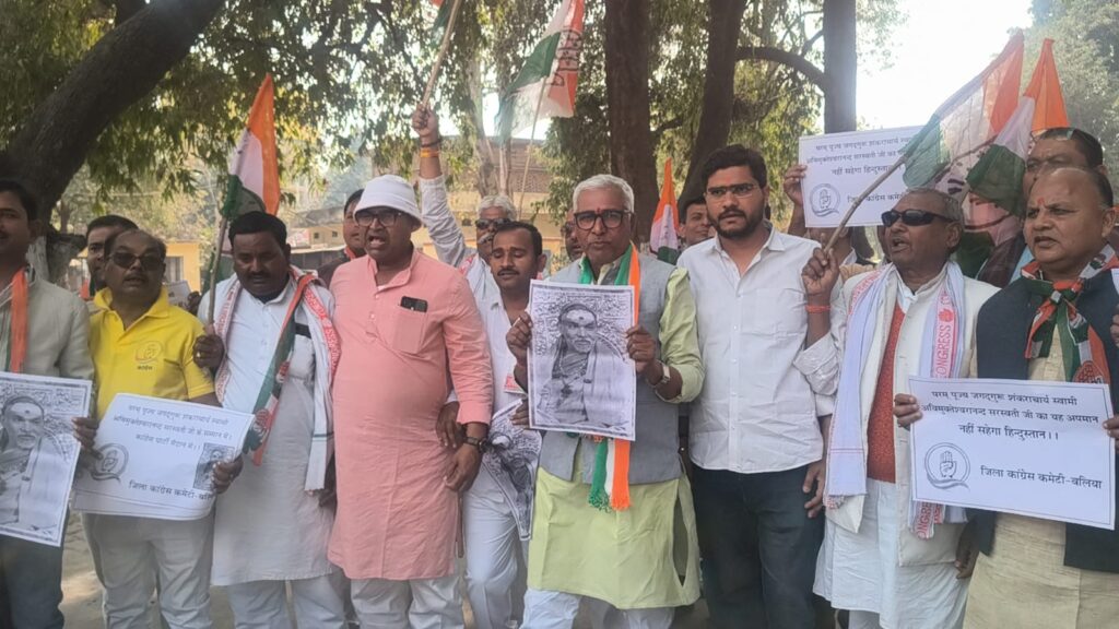 बलिया । आज जिला कांग्रेस कमेटी ने उत्तर प्रदेश कांग्रेस कमेटी के आवाहन पर प्रधानमंत्री को जिलाधिकारी के माध्यम से परम पूज्य जगदगुरु शंकराचार्य अविमुक्तेश्वरानंद सरस्वती जी महाराज को उत्तर प्रदेश पुलिस के द्वारा अपमानित करने एवं तथाकथित संत आशुतोष पांडेय के कहने पर चरित्र हनन का मुकदमा कायम किये जाने के विरोध में आज जनपद के कांग्रेस कार्यकर्ताओं ने जिलाधिकारी के माध्यम से प्रधानमंत्री को ज्ञापन सौपा।