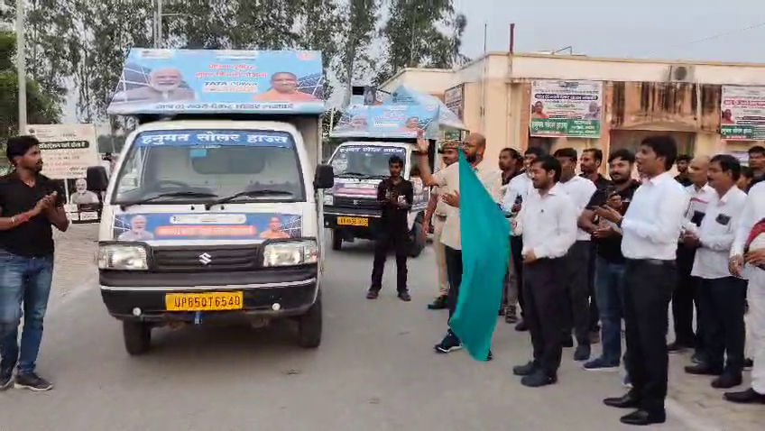 चंदौली: जिलाधिकारी चंद्र मोहन गर्ग ने गुरुवार को कलेक्ट्रेट परिसर से हनुमत सोलर हाउस के प्रचार वाहनों को हरी झंडी दिखाकर रवाना किया। यह प्रचार वाहन गांव-गांव जाकर लोगों को पीएम सूर्य घर मुफ्त बिजली योजना की जानकारी देंगे और इच्छुक परिवारों को सोलर पैनल लगाने के लिए प्रेरित करेंगे।