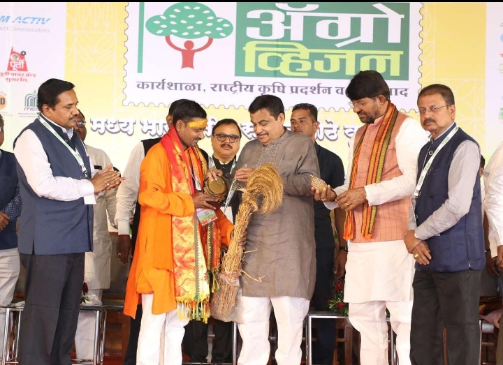 वाराणसी/राजातालाब: एग्रो व्हिजन कार्यशाला राष्ट्रीय कृषि प्रदर्शन नागपुर महाराष्ट्र में केंद्रीय परिवहन मंत्री नितिन गडकरी ने वाराणसी जिले के टड़िया जख्खिनी निवासी प्रगतिशील किसान रणजीत सिंह रघुवंशी को बेस्ट फार्मर्स का सम्मान प्रदान किये।