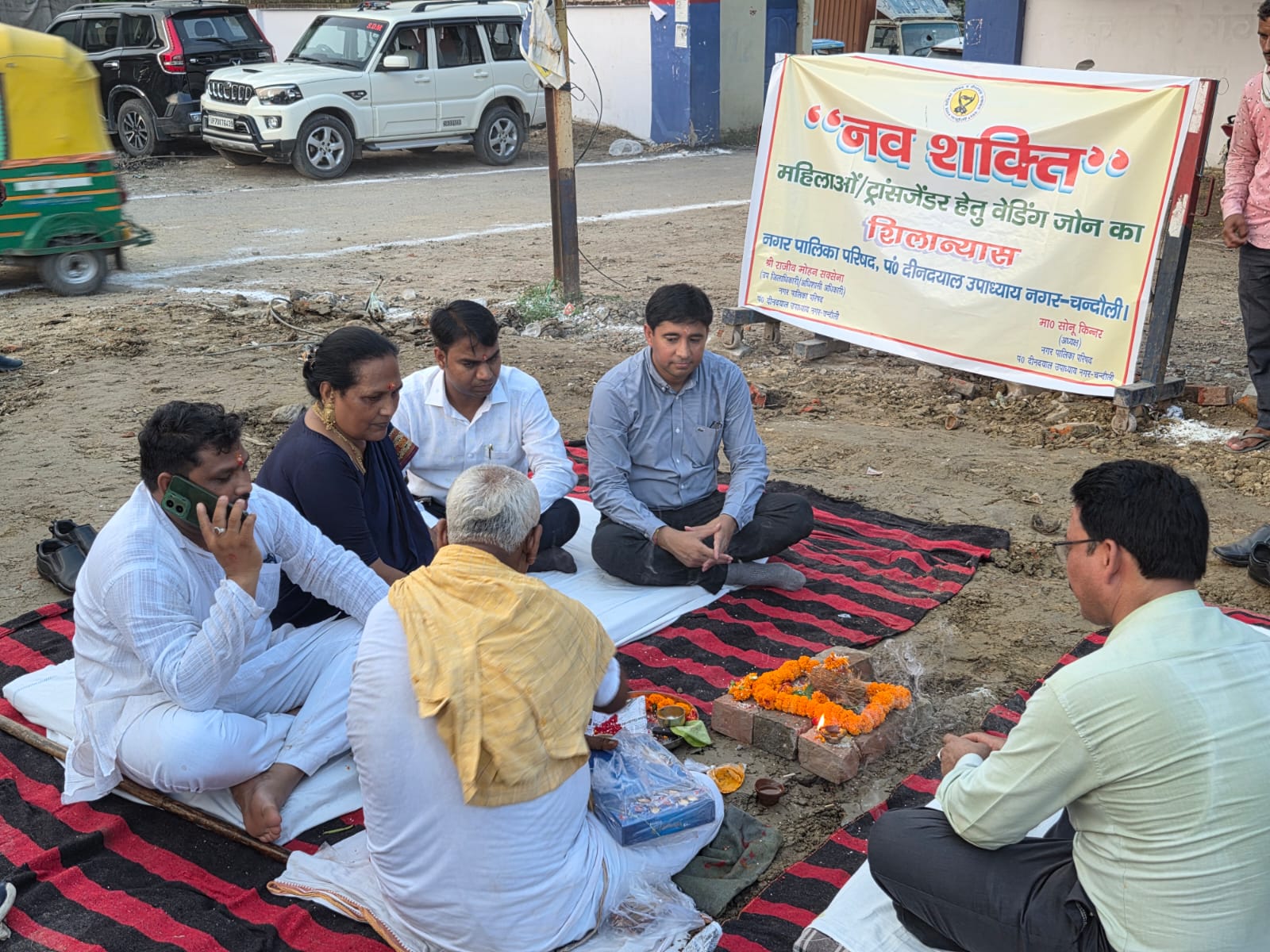 चन्दौली: नवरात्रि के अवसर पर नगर में “नव शक्ति” के नाम से महिला और ट्रांसजेंडर के लिए अस्थायी शॉप वेंडिंग जोन का शिलान्यास किया गया। इस वेंडिंग जोन में कुल 9 अस्थायी शॉप बनाई जाएंगी, जिनमें से 8 शॉप महिलाओं को और 1 शॉप ट्रांसजेंडर को आवंटित की जाएगी।