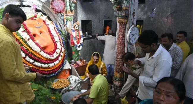 वहीं महिलाएं परंपरा अनुसार 24 घंटे का तीज व्रत रखती हैं और भगवान गणपति के दर्शन करने के बाद ही अन्न-जल ग्रहण करती हैं। पूरे दिन मंदिर परिसर में भक्ति गीतों और ‘गणपति बप्पा मोरया’ के जयकारों से माहौल भक्तिमय बना रहा।