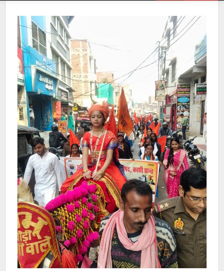 यात्रा के दौरान छात्राओं और परिषद कार्यकर्ताओं ने पूरे मार्ग में “जय भवानी – जय लक्ष्मीबाई”, “भारत माता की जय”, “नारी शक्ति – राष्ट्र शक्ति” जैसे जोशीले नारे लगाए, जिससे पूरा शहर ऊर्जा और उत्साह से भर उठा।