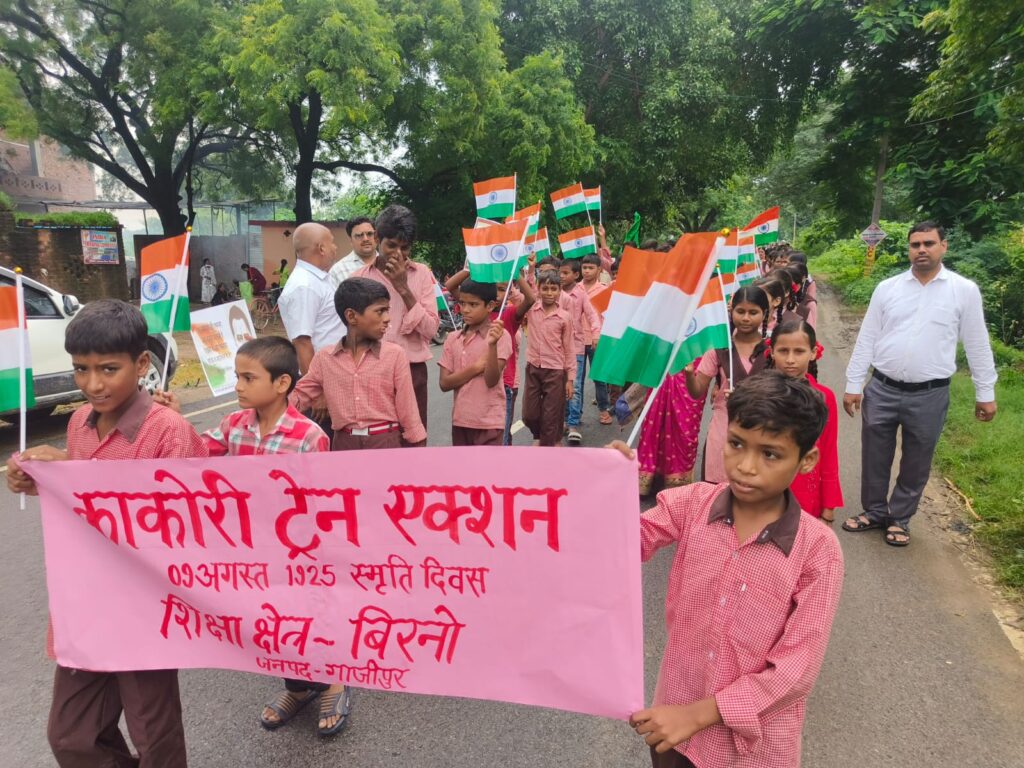 गाजीपुर: देश के स्वतंत्रता संग्राम के ऐतिहासिक “काकोरी ट्रेन एक्शन” की शताब्दी वर्षगांठ के अवसर पर शिक्षा क्षेत्र बिरनो में देशभक्ति से ओतप्रोत कार्यक्रम का आयोजन किया गया। खंड शिक्षा अधिकारी मिनहाज आलम के नेतृत्व में उच्च प्राथमिक विद्यालय कस्तूरबा गांधी आवासीय बालिका विद्यालय और प्राथमिक विद्यालय बिरनो (प्रथम एवं द्वितीय) के छात्र-छात्राओं द्वारा प्रभात फेरी निकाली गई।