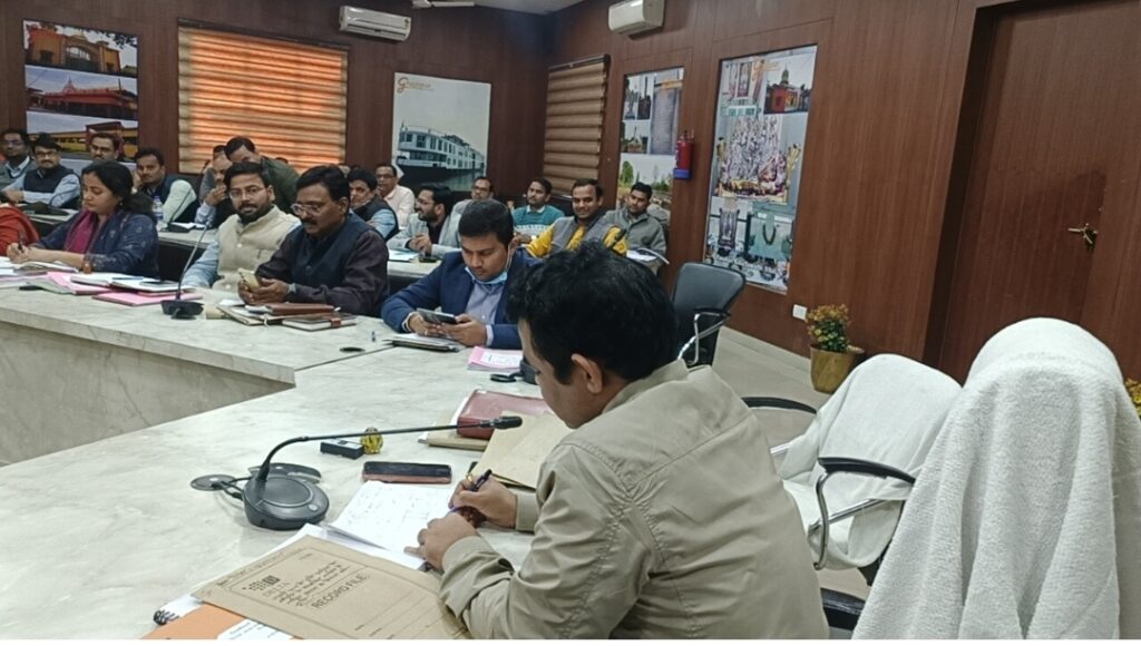 गाज़ीपुर कलेक्ट्रेट सभागार में मुख्य राजस्व अधिकारी आयुष चौधरी की अध्यक्षता और अपर जिलाधिकारी (वि/रा) दिनेश कुमार की उपस्थिति में कर-करेत्तर एवं मासिक स्टाफ बैठक आयोजित हुई। बैठक में विभिन्न विभागों की राजस्व वसूली और लंबित मामलों की विस्तृत समीक्षा की गई। मुख्य राजस्व अधिकारी ने परिवहन, वन विभाग, स्टाम्प, नगर पालिका, ऑडिट आपत्तियों, चकबंदी, व्यापार कर, विद्युत देय, आबकारी, अंश निर्धारण तथा मोटर देय से संबंधित प्रगति की जानकारी ली। उन्होंने सभी संबंधित अधिकारियों को अपने-अपने लक्ष्यों के अनुरूप वसूली सुनिश्चित करने और किसी भी प्रकार की लापरवाही न बरतने के निर्देश दिए।इसके बाद आयोजित मासिक राजस्व स्टाफ बैठक में लंबित और विवादित प्रकरणों के शीघ्र निस्तारण, दाखिल-खारिज की कार्यवाही तथा पुराने वादों को समयबद्ध तरीके से समाप्त करने पर जोर दिया गया। मुख्य राजस्व अधिकारी ने समस्त उपजिलाधिकारी, तहसीलदार और राजस्व अधिकारियों को निर्देशित किया कि सरकार की मंशा के अनुरूप चल रही योजनाओं को प्राथमिकता से लागू किया जाए, ताकि आम जनता को राजस्व योजनाओं का लाभ आसानी से मिल सके।उन्होंने धारा 24, 34 और 116 के एक वर्ष से अधिक पुराने वादों के त्वरित निस्तारण के निर्देश दिए तथा धारा 67 के मामलों में टीम बनाकर स्थलीय सत्यापन कराने को कहा। बैठक में सीमा स्तंभ, कृषि भूमि पट्टा, आवासीय भूमि आवंटन और अंश निर्धारण की प्रगति की भी समीक्षा की गई। बैठक में सभी उपजिलाधिकारी, तहसीलदार, नायब तहसीलदार और संबंधित कर्मचारी उपस्थित रहे।
