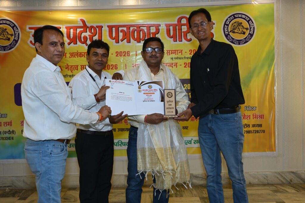 चंदौली। Deen Dayal Upadhyay Nagar स्थित सरस्वती होटल में उत्तर प्रदेश पत्रकार परिषद चंदौली इकाई द्वारा आयोजित “पूर्वांचल रत्न अलंकरण सम्मान समारोह 2026” धूमधाम से सम्पन्न हुआ।