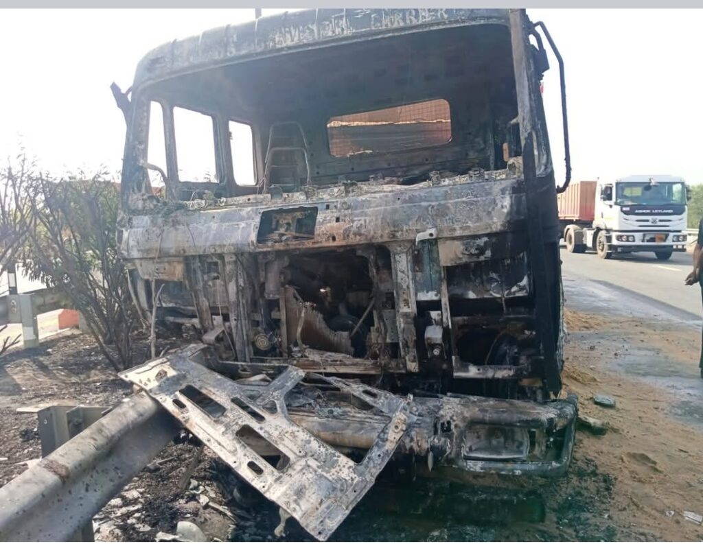 सूचना मिलते ही एक्सप्रेसवे की रेस्क्यू टीम मौके पर पहुंची और कड़ी मशक्कत के बाद आग पर काबू पाया।हादसे में चालक सुरक्षित बच गया, जबकि ट्रक को भारी नुकसान हुआ और कुछ समय के लिए यातायात प्रभावित रहा।