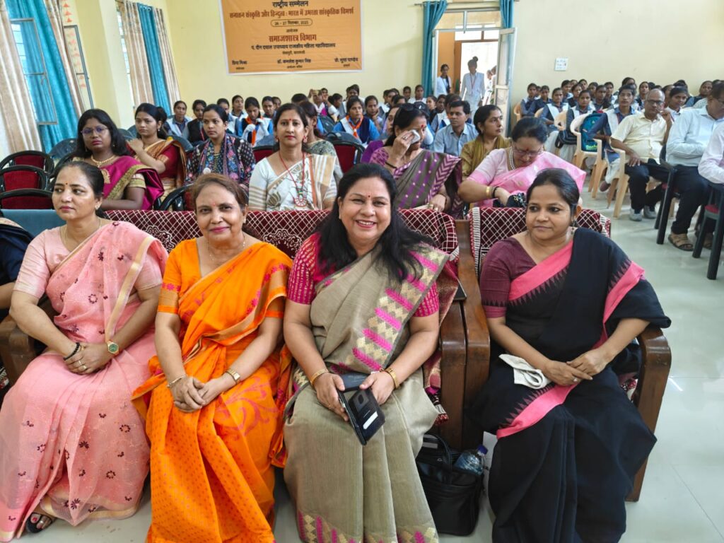 कार्यक्रम की अध्यक्षता कर रहीं प्रो. सविता भारद्वाज, प्राचार्य, राजकीय महाविद्यालय, उत्तर प्रदेश ने अपने अध्यक्षीय उद्बोधन में सनातन संस्कृति में संस्कारों की भूमिका और मानवीय दायित्वों पर बल दिया।