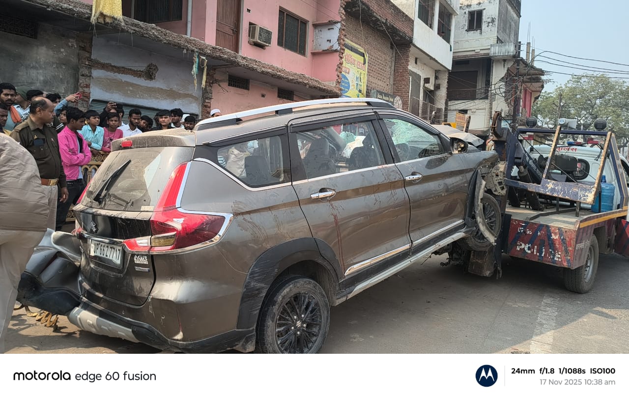 वाराणसी। लोहता थाना क्षेत्र के धमरिया पुल के पास सोमवार को तेज रफ़्तार मारुति अर्टिगा कार अनियंत्रित होकर सड़क के किनारे लगे रेलिंग को तोड़ते हुए सीधे एक मकान से जा टकराई। भीषण टक्कर से मकान की दीवारें, छत के गाटर व पटिया पूरी तरह क्षतिग्रस्त हो गए, वहीं कार के परखच्चे उड़ गए। हादसे में एक व्यक्ति की मौके पर ही दर्दनाक मौत हो गई।