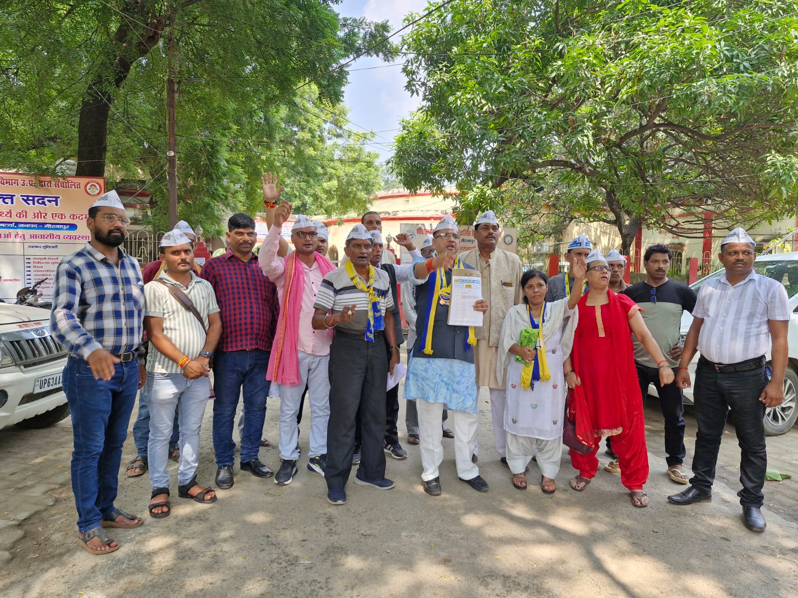 मिर्जापुर में सूदखोरों के खिलाफ आप का प्रदर्शन, डीएम-एसपी को सौंपा ज्ञापन