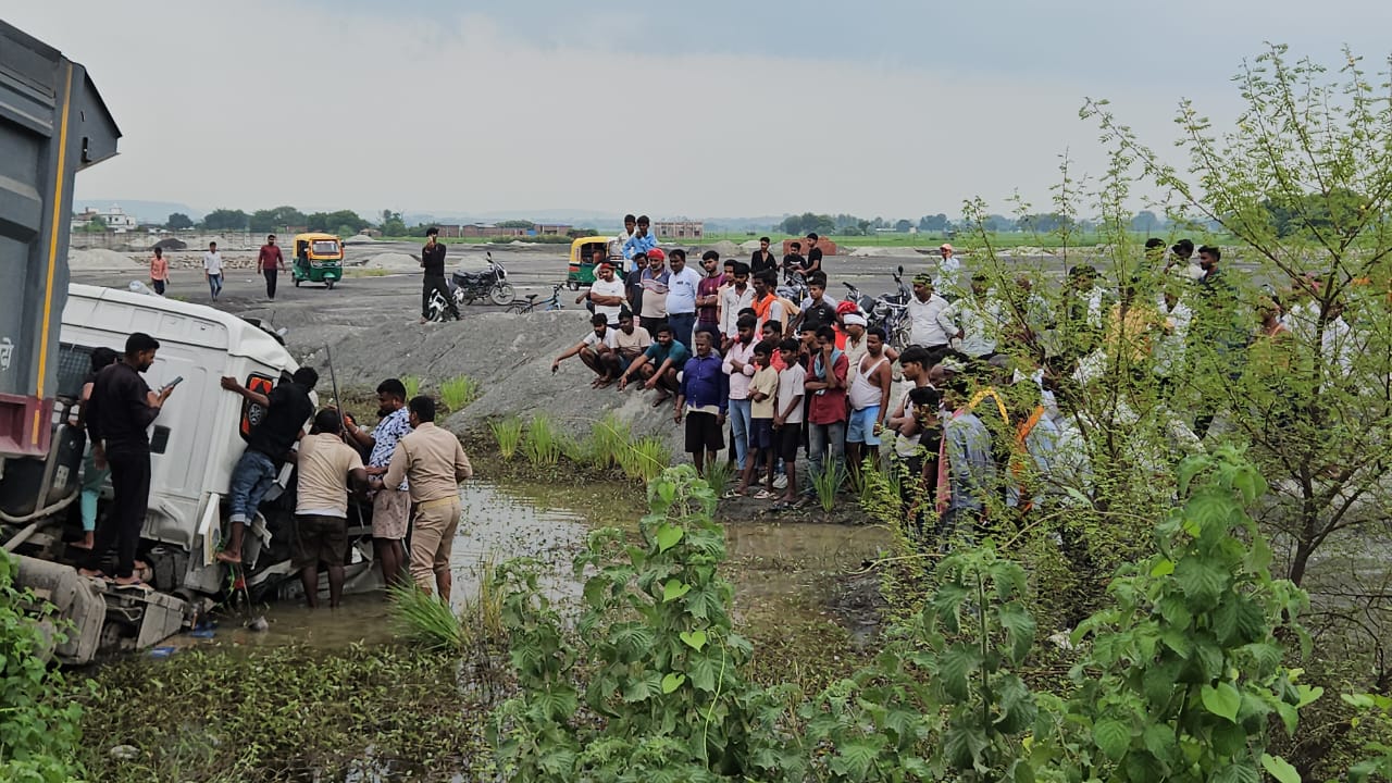 मिर्जापुर: अनियंत्रित ट्रक डिवाइडर से टकराकर गड्ढे में गिरी, चालक घायल