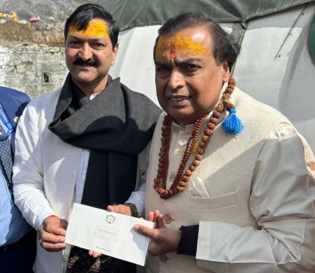 मुकेश अंबानी केदारनाथ धाम पहुंचे। जहाँ उन्होंने बाबा केदारनाथ का दर्शन-पूजन किया। दर्शन के बाद उद्योगपति ने 5 करोड़ का दान भी दिया। रिलायंस इंडस्ट्रीज के मालिक मुकेश अंबानी ने केदारनाथ और बदरीनाथ के दर्शन किए। दर्शन करने के बाद रिलायंस इंडस्ट्रीज के अध्यक्ष मुकेश अंबानी ने करोड़ रुपयों का दान भी दिया।