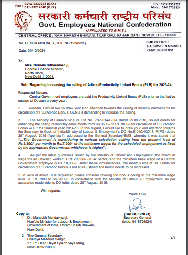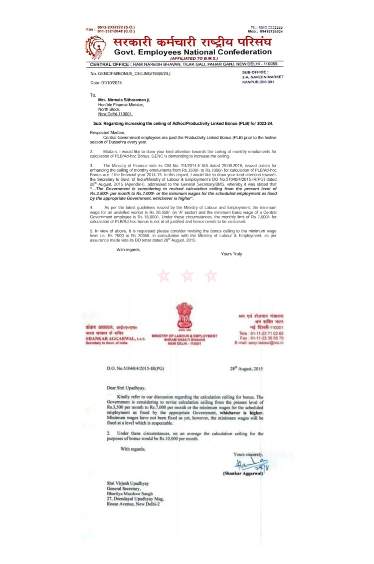 New Delhi : दशहरा का त्यौहार आते ही देश भर के लगभग 12 लाख रेलवे कर्मचारियों को बोनस का इंतजार रहता है। नवरात्र शुरू होने वाला है लेकिन सरकार द्वारा अभी तक बोनस की कोई घोषणा नहीं की गई है, जिससे रेलकर्मियों में मायूसी है। भारतीय रेलवे मजदूर संघ ने वित्त मंत्री निर्मला सीतारामन को पत्र लिखकर सातवें वेतन आयोग के नियमानुसार मूल वेतन और महंगाई भत्ते के आधार पर बोनस का भुगतान दशहरा से पहले करने की माँग की है।