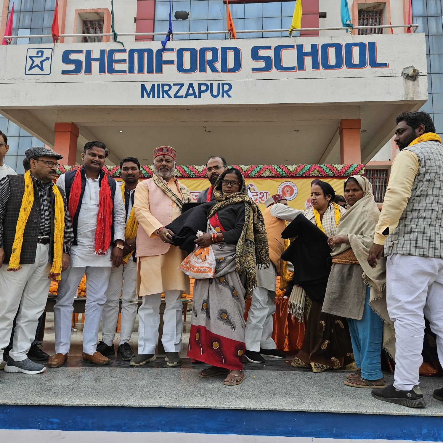 मीरजापुर: नगर के बड़ी बसही में स्थित सेमफोर्ड स्कूल बड़ी बसही मीरजापुर में वैश्य समाज उत्तर प्रदेश मीरजापुर के अध्यक्ष ई० विवेक बरनवाल, महामंत्री प्रतिक अग्रवाल एवं नगर अध्यक्ष मुकेश अग्रहरी के नेतृत्व में जनपद के विभिन्न क्षेत्रों से आए 500 जरूरत मंदों को कंबल वितरण का पुनित कार्य किया गया।