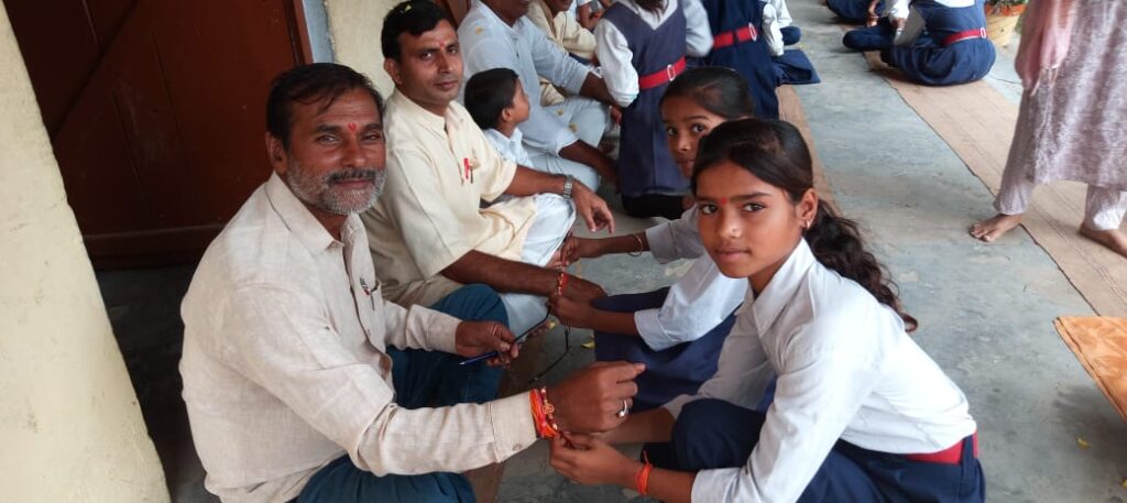 इसके बाद छात्राओं ने भाइयों की कलाई पर राखी बांधकर उनसे रक्षा का वचन लिया। पारंपरिक रस्मों के साथ भाई-बहन के प्रेम और स्नेह का प्रतीक यह पर्व विद्यालय में एक भावनात्मक वातावरण लेकर आया।