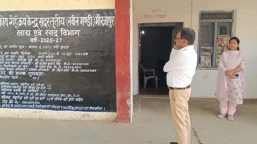 मीरजापुर। जिलाधिकारी मीरजापुर श्री पवन कुमार गंगवार, आईएएस के निर्देश पर उपजिलाधिकारी सदर श्री गुलाब चन्द्र ने आज दिनांक 15.04.2026 को मंडी समिति मीरजापुर स्थित गेहूं खरीद केंद्रों का औचक निरीक्षण किया।