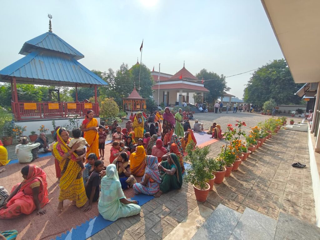 पाठ-पूजन के उपरांत प्रसाद वितरण किया गया तथा बड़ी संख्या में उपस्थित गरीब व आदिवासी परिवारों को भरपेट भोजन कराया गया। इसके बाद आश्रम की ओर से लगभग 100 जरूरतमंद लोगों को कम्बल, साड़ी, तेल, साबुन, पेस्ट सहित आवश्यक घरेलू सामग्री प्रदान की गई। पुरुषों को कम्बल एवं धोती भी वितरित किए गए।