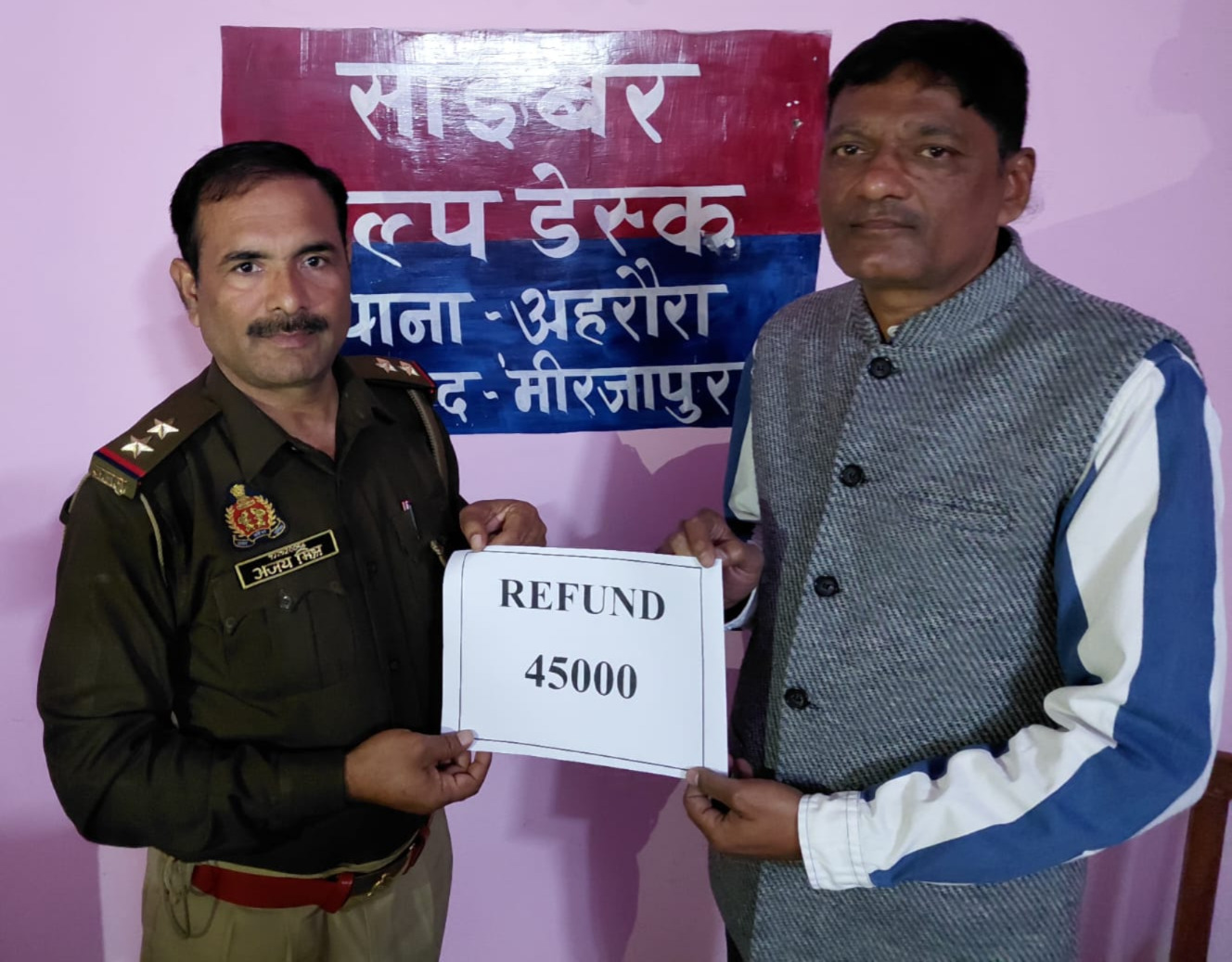 अपर्णा रजत कौशिक पुलिस अधीक्षक जनपद मीरजापुर के निर्देशन में व अपर पुलिस अधीक्षक ऑपरेशन एवं क्षेत्राधिकारी ऑपरेशन के नेतृत्व में थाना अहरौरा की साइबर पुलिस टीम द्वारा उपरोक्त जाँच के दौरान कटी धनराशि 45,000 /- आवेदक के खाते वापस कराए गये।