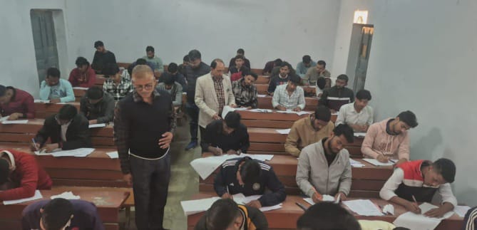 केंद्र पर कुल 2435 छात्र-छात्राएं पंजीकृत थे, जिनमें से 171 परीक्षार्थी अनुपस्थित रहे। इस दौरान नकल का प्रयास करते हुए तीन छात्रों को रंगे हाथ पकड़ा गया, जिन्हें रिस्टीकेट कर विश्वविद्यालय के नियमों के अनुसार अनफेयर मींस (यूएफएम) के तहत कार्रवाई की गई।