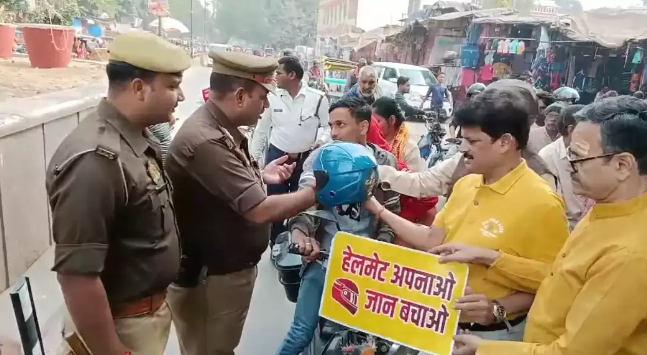 वाराणसी: यातायात माह के अवसर पर सड़क सुरक्षा को बढ़ावा देने के लिए सुबह-ए-बनारस क्लब ने एक सराहनीय पहल की। बुधवार को मैदागिन चौराहे पर बिना हेलमेट बाइक चला रहे लोगों के बीच जागरूकता अभियान चलाया गया।