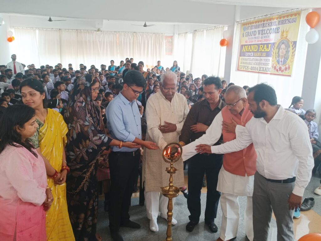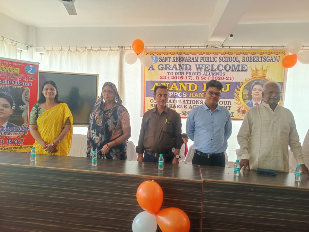 सोनभद्र। अपने मातृ शैक्षणिक संस्थान संत कीनाराम सीनियर सेकेंडरी पब्लिक स्कूल, लोढ़ी राबर्ट्सगंज में सोमवार को यूपी पीसीएस परीक्षा में 22वीं रैंक हासिल करने वाले आनंद राज सिंह के सम्मान में भव्य स्वागत समारोह का आयोजन किया गया। जैसे ही उनके गृह जनपद आगमन की सूचना मिली, विद्यालय और महाविद्यालय परिवार में उत्साह की लहर दौड़ गई। छात्र-छात्राओं ने अपने शिक्षकों के मार्गदर्शन में पूरे विद्यालय परिसर को फूल-मालाओं, गुब्बारों, पोस्टरों और बैनरों से सजाकर उत्सव का माहौल बना दिया।