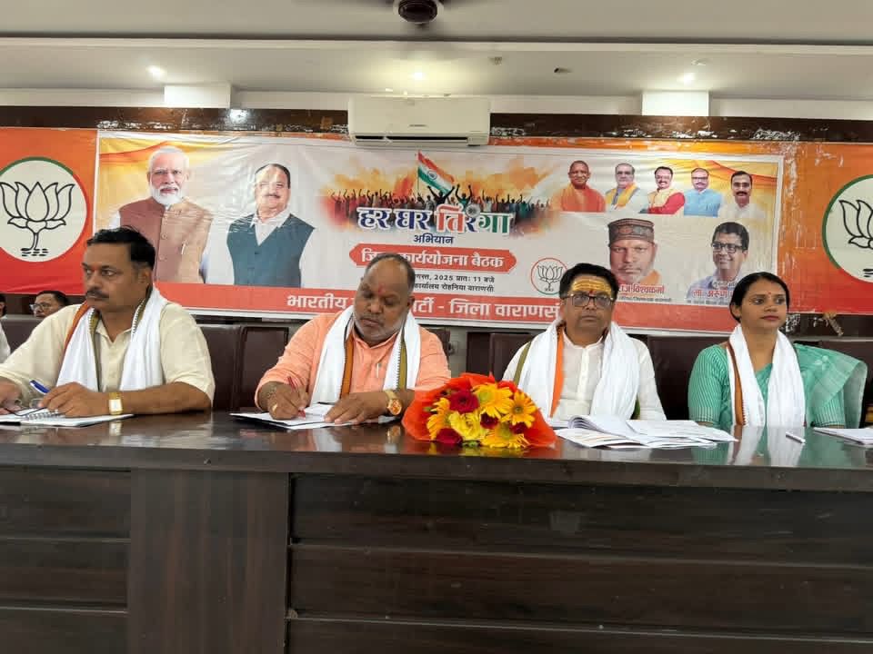 वाराणसी: “हर घर तिरंगा” अभियान की तैयारी को लेकर बुधवार को भाजपा के क्षेत्रीय कार्यालय, केशरीपुर में एक महत्वपूर्ण बैठक आयोजित की गई। बैठक में अभियान की रूपरेखा और सफल क्रियान्वयन हेतु विभिन्न बिंदुओं पर चर्चा की गई।