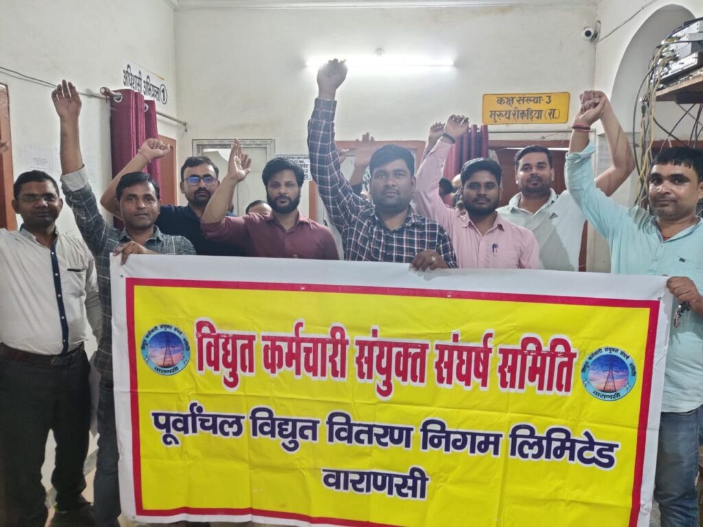 वाराणसी: विद्युत कर्मचारी संयुक्त संघर्ष समिति उत्तर प्रदेश के बैनर तले बनारस के बिजली कर्मियों ने आज निजीकरण के विरोध में प्रांतव्यापी विरोध प्रदर्शन किया। इस दौरान कर्मचारियों ने लेसा में लागू वर्टिकल प्रणाली को उपभोक्ताओं के हितों के विपरीत बताते हुए सिरे से खारिज कर दिया।