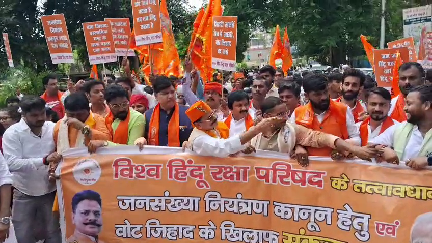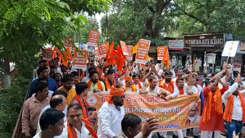 वाराणसी: विश्व हिंदू रक्षा परिषद के राष्ट्रीय अध्यक्ष गोपाल राय ने रविवार को वाराणसी में जनसंख्या नियंत्रण कानून लागू करने और कथित “वोट जिहाद” के खिलाफ एक विशाल संघर्ष यात्रा का नेतृत्व किया। परिषद के हजारों कार्यकर्ताओं की भागीदारी वाली इस यात्रा के दौरान “जनसंख्या नियंत्रण कानून लाओ, देश बचाओ”, “वोट जिहाद बंद करो” और “जागो हिंदू जागो” जैसे नारे गूंजते रहे।