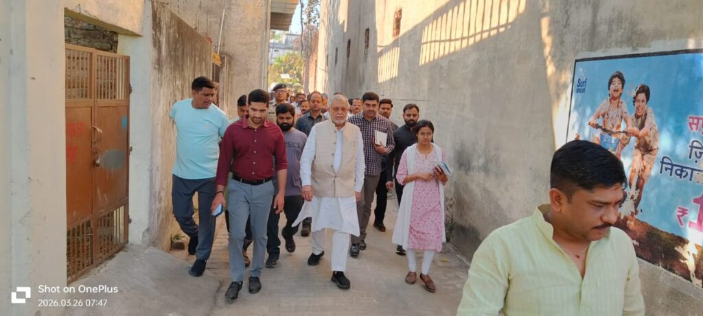 वाराणसी: प्रभारी मंत्री वाराणसी एवं उत्तर प्रदेश के वित्त एवं संसदीय कार्य मंत्री सुरेश खन्ना ने गुरुवार (26 मार्च 2026) को तरना वार्ड स्थित मलिन बस्ती का स्थलीय निरीक्षण किया। निरीक्षण के दौरान उन्होंने क्षेत्र में मूलभूत सुविधाओं और विकास कार्यों की स्थिति का जायजा लेते हुए संबंधित अधिकारियों को आवश्यक दिशा-निर्देश दिए।