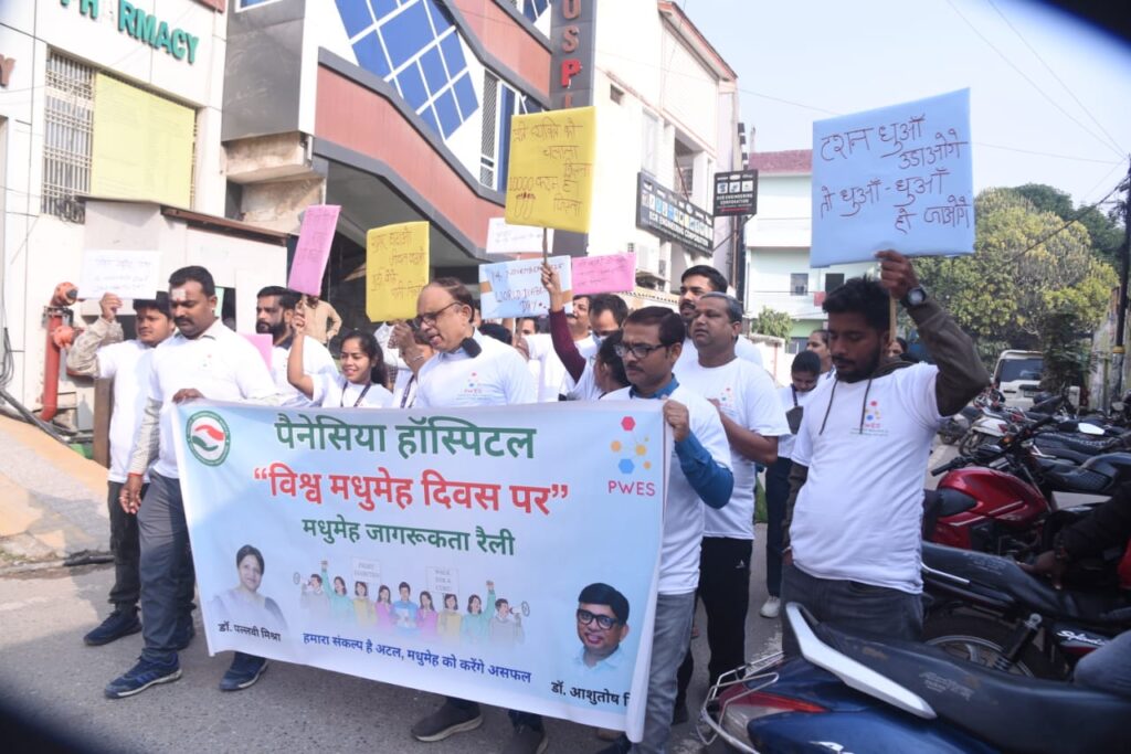 वाराणसी: विश्व मधुमेह दिवस के अवसर पर कबीर नगर स्थित पैनेसिया हॉस्पिटल द्वारा स्वास्थ्य जनजागरूकता रैली आयोजित की गई। रैली का मुख्य उद्देश्य लोगों को मधुमेह, हृदय रोग और मोटापा जैसे बढ़ते स्वास्थ्य जोखिमों के प्रति जागरूक करना था।