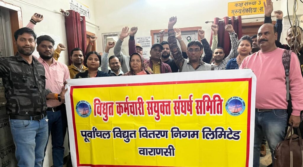 वाराणसी: विद्युत कर्मचारी संयुक्त संघर्ष समिति के आह्वान पर पूर्वांचल व दक्षिणांचल विद्युत वितरण निगम के निजीकरण के विरोध में आंदोलन कर रहे बिजली कर्मियों ने आज 356वें दिन भी बनारस में जोरदार प्रदर्शन किया। बिजली कर्मियों ने साफ कहा कि पूर्वांचल विद्युत निगम का निजीकरण किसी भी हाल में बर्दाश्त नहीं किया जाएगा।