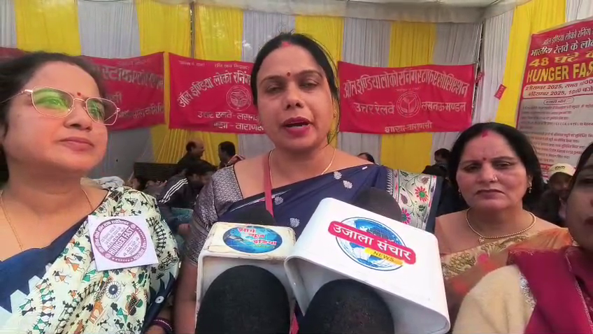 वाराणसी में लोको पायलट के धरना प्रदर्शन में महिलाएं और बच्चे भी शामिल